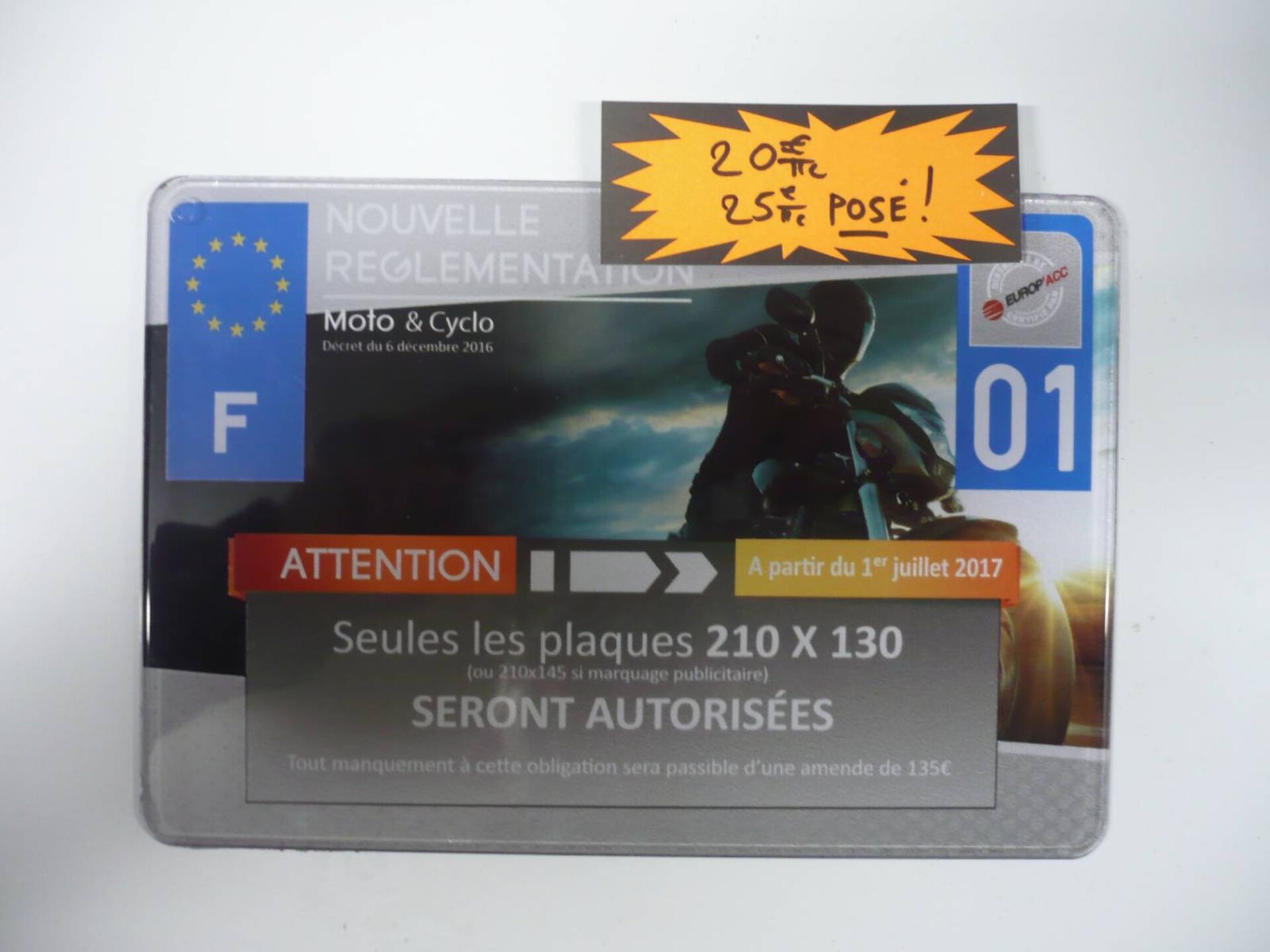 Seules les plaques 210 x 130 sont autorisées depuis le 1er juillet 2017 !